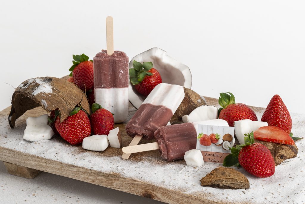 Dus besloten we om de ijswereld op zijn kop te zetten met natuurlijke fruitijsjes. Onze ijsjes zijn volledig lactose-, gluten en E-nummervrij.